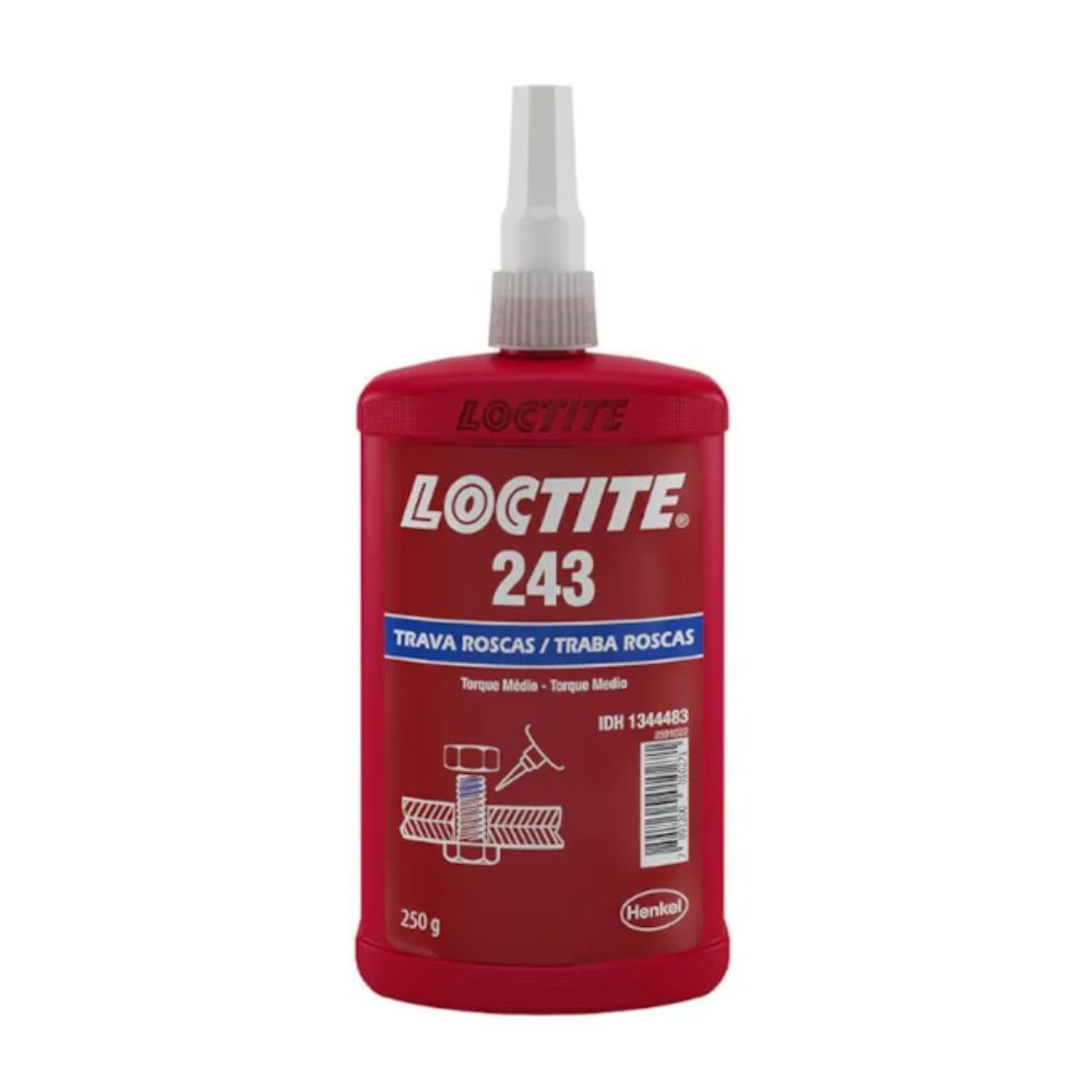 O LOCTITE 243 é um adesivo azul de resistência média que veda e prende porcas e parafusos para evitar afrouxamento devido a choques e vibrações.