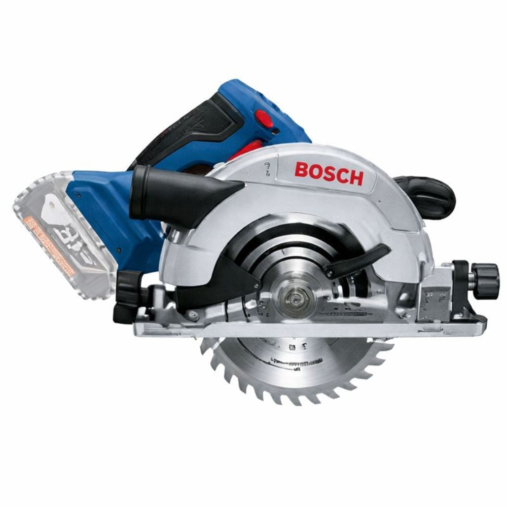 A serra circular à bateria Bosch GKS 18V-57, 18V, é extremamente rápida em velocidade de corte: 71mm por segundo e possui alto torque para cortes em madeiras duras.