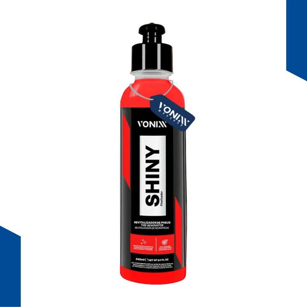 Shiny é o produto ideal para manter a beleza e brilho dos pneus de seu veículo. Desenvolvido exclusivamente pela Vonixx, sua fórmula única protege e revitaliza a borracha dos pneus, mantendo seu brilho por mais tempo.